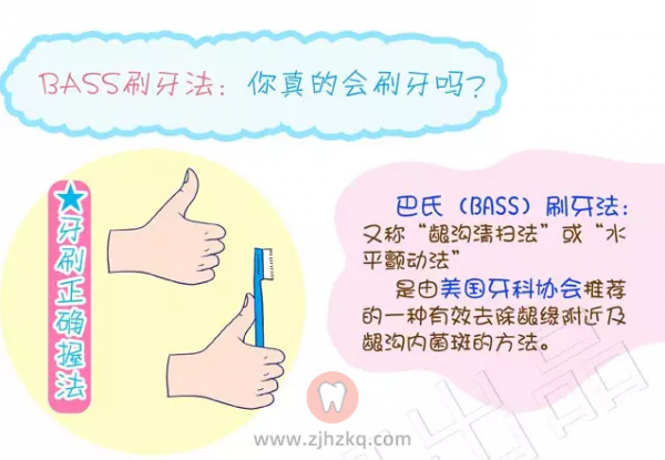 BASS刷牙法视频动图6个正确刷牙动作分解图片 杭城看牙记 • 2020年12月22日 12:09 • 看牙科普攻略 很多人每天都刷牙,为什么牙齿还是会不好? 你的刷牙方法正确了吗? 目前国际公认有效的刷牙方法是巴氏(Bass)刷牙法又称龈沟清扫法或水平颤动法,是由美国牙科协会推荐的一种有效去除龈缘附近及龈沟内菌斑的方法。 刷牙颈部龈缘 刷颊舌(腭)面 刷咬合面 您学会了吗?没学会的赶紧行动,带动身边的每一个人,Bass刷牙法学起来!转给有需要的人! 本文内容源自网络仅供参考,不作为诊断医疗依据,更多查询请 → 在线咨询客服