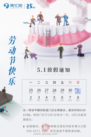 杭州博凡口腔五一放假通知 杭城看牙记 • 2022年5月1日 09:45 • 杭州看牙动态 五一劳动节期间西溪门诊正常接诊,接诊时间9:00-17:00。其他门诊于5月1日休诊一天,5月2日起恢复接诊。 *放假期间,如遇特殊情况请及时联系博凡客服,给您造成不便敬请谅解。 本文内容源自网络仅供参考,不作为诊断医疗依据,更多查询请 → 在线咨询客服