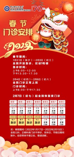 杭州口腔医院城西院区2022年春节放假开诊时间 杭城看牙记 • 2022年1月27日 09:37 • 杭州看牙动态 大家期盼一年的春节即将到来!春节假期与家人朋友相聚少不了觥筹交错,推杯换盏美食当前,可不能被牙齿拖累这次时候找不到牙医可不行杭州口腔医院城西院区假期“不掉线”您尽管过年,我们守护您的健康 春节,我们不打烊! 新年就是跟家人亲戚朋友分享一年收获的日子在2022年春节来临之际杭州口腔医院城西院区始终如一地在一线守护您和您家人朋友的口腔健康 本文内容源自网络仅供参考,不作为诊断医疗依据,更多查询请 → 在线咨询客服