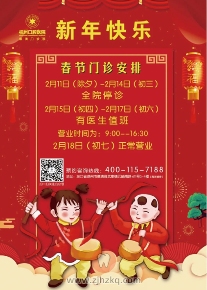 杭口德清分院2021年春节期间门诊安排 杭城看牙记 • 2021年2月10日 22:21 • 杭州看牙动态 因疫情防控需要,很多家乡在外乡外省的市民,响应国家号召留德清过年。为方便留德清过年人员春节期间看牙就诊,今年杭州口腔医院德清分院春节门诊安排如下: 本文内容源自网络仅供参考,不作为诊断医疗依据,更多查询请 → 在线咨询客服