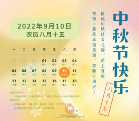 杭州多仁口腔中秋假期放假一天 杭城看牙记 • 2022年9月7日 10:23 • 杭州看牙动态 中秋节快乐!(中秋节当天放假1天,请勿跑空) 来源:杭州多仁口腔 本文内容源自网络仅供参考,不作为诊断医疗依据,更多查询请 → 在线咨询客服