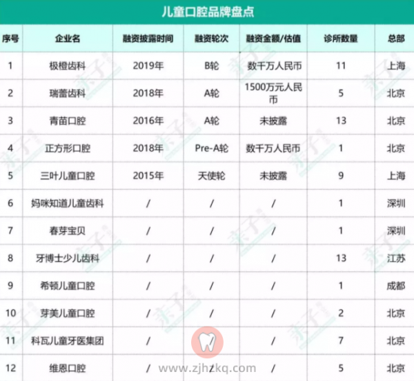 儿牙开始“崭露头角”的典型代表包括极橙儿童齿科、青苗儿童口腔、三叶儿童口腔、正方形口腔等。具体整理如下