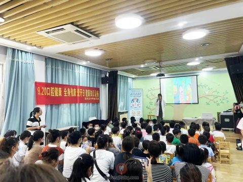 9月20日,富阳口腔医院金桥北路门诊部志愿者团来到高桥米特幼儿园举行义诊活动,为全园小朋友及教职工进行了口腔检查。随后举办“9·20口腔健康全身健康”爱牙日健康知识讲座,向全园师生普及了口腔健康知识。