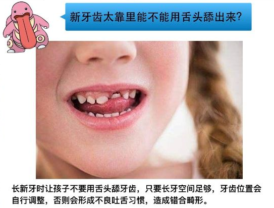 说到换牙期的注意事项,刘医师表示,要在饮食上对孩子多加注意,多吃些有助于换牙和促进骨颌发育的食物,类似于蔬菜水果、粗粮。另外,想长出一口漂亮整齐的新牙,在换牙期间一定要让孩子忍住不要舔,否则会造成牙齿错合畸形。