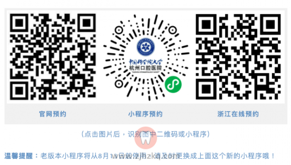 打开微信——搜索并关注【杭州口腔医院平海院区】微信公众号——进入公众号——下方菜单栏里点击“我要预约”——点击“预约挂号”