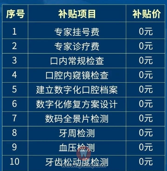 在定点口腔机构可免费体验十项口腔检查,费用全额补贴,即全部免费!如上图。