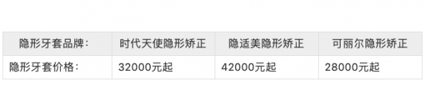 当然啦,还有隐形矫正的价格表!