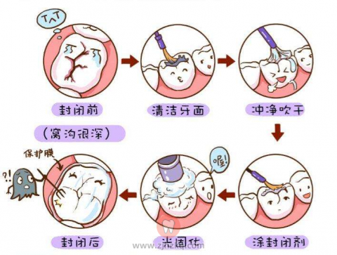 窝沟封闭要怎么做,看下面的图就明白了。