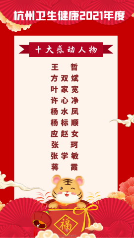 近日,杭州卫生健康委开展了杭州卫生健康2021年度“十大感动人物”征集遴选活动,得到了全市卫生健康系统的广泛关注和积极参与。经单位推荐、首轮投票、评委推选等征集遴选程序,杭州卫生健康2021年度“十大感动人物”出炉。