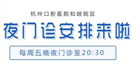 杭州口腔医院和睦院区夜门诊 杭城看牙记 • 2021年4月15日 21:51 • 杭州看牙动态 打工人的福音 杭州口腔医院和睦院区 开设夜门诊啦! 每周五晚营业至20:30 为每一位爱牙的你开设特殊通道! 杭州口腔医院和睦院区坐落于杭州市拱墅区登云路427号,不仅是良好的诊疗环境,更是有口腔专家坐诊杭口和睦,用精湛的诊疗技术真诚为每一位患者带去健康口腔。 本文内容源自网络仅供参考,不作为诊断医疗依据,更多查询请 → 在线咨询客服