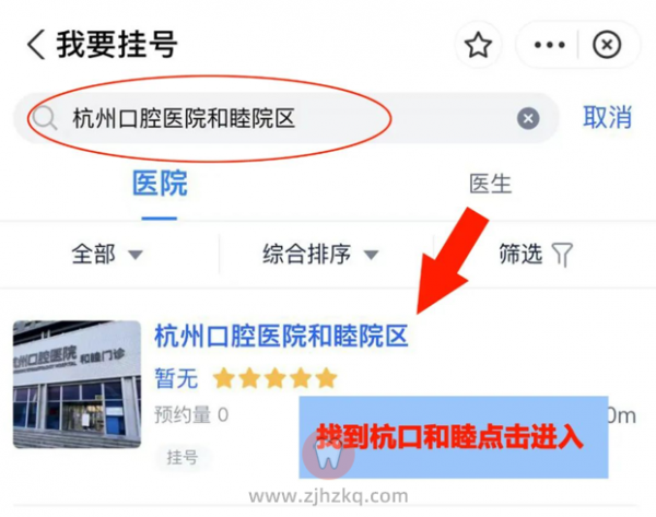 5.选择进入“杭州口腔医院和睦院区”主页点击预约挂号