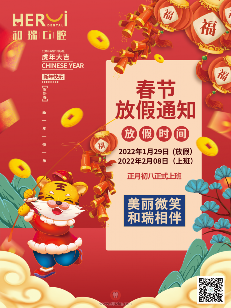 “2022春节”即将来临,在这辞旧迎新之际,感谢大家过去一年对杭州和瑞口腔医院的支持和信任!