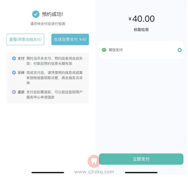 4. 预约成功后,可选择在线支付或到院支付(建议直接在线支付,可节省到院排队缴费时间);