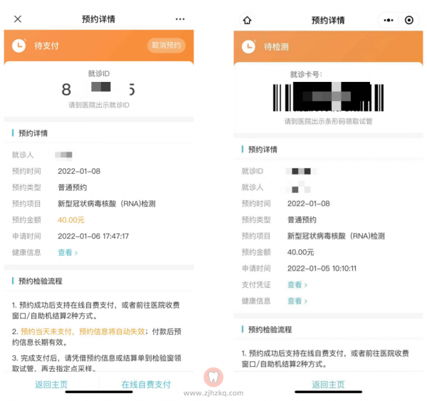 5. 未支付的患者到院出示就诊ID(如左图)并支付费用;已支付的患者到院出示条形码(如右图),可直接打印条码并领取耗材进行检