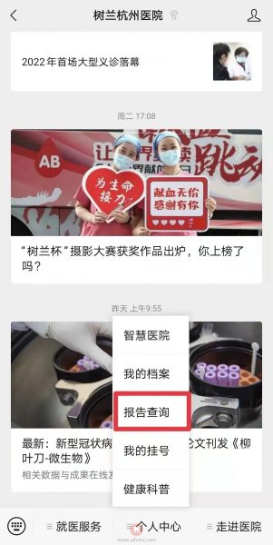 1、微信搜索“**杭州医院”,进入官方微信公众号;