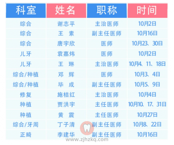 杭州口腔医院建德分院10月口腔专家坐诊时间 杭城看牙记 • 2021年9月24日 16:20 • 杭州看牙动态 口腔专家有约,赶紧收藏! 杭州口腔医院建德门诊部十月专家坐诊时间表来了! 让你不再四处奔波口腔专家就在建德家门口 10月口腔专家坐诊时间公告 杭州口腔医院建德门诊部 建德市盛德国际广场2号楼4层 本文内容源自网络仅供参考,不作为诊断医疗依据,更多查询请 → 在线咨询客服
