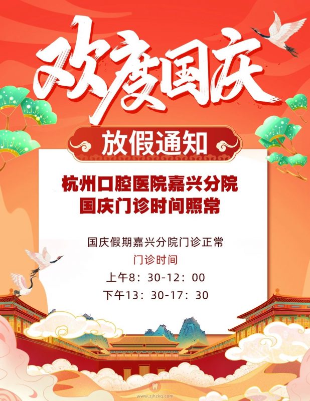 杭州口腔医院嘉兴分院节假日门诊上班时间(以国庆为例) 杭城看牙记 • 2024年10月4日 10:56 • 杭州看牙动态 杭州口腔医院嘉兴分院国庆门诊时间照常 门诊时间上午8:30-12:00下午13:30-17:30 本文内容源自网络仅供参考,不作为诊断医疗依据,更多查询请 → 在线咨询客服