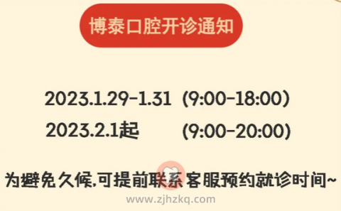 杭州博泰口腔开诊上班时间安排 杭城看牙记 • 2023年1月29日 10:48 • 杭州看牙动态 开诊通知 | 正月初八,杭州博泰口腔开诊啦! 具体上班时间如上图,为避免久候,建议大家提前预约就诊。 来源:杭州博泰口腔 本文内容源自网络仅供参考,不作为诊断医疗依据,更多查询请 → 在线咨询客服