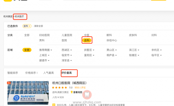特别提醒,因为杭州大部分公立医院都没有在美团上面部署医疗服务,所以下面的机构均为私立口腔。