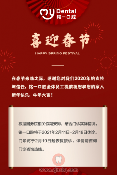 杭州铭一口腔2021年春节门诊安排 杭城看牙记 • 2021年2月7日 00:15 • 杭州看牙动态 铭一口腔位于钱江新城国际时代广场,占地2300平方米,地铁4号线城星路直达。 铭一口腔设有儿牙防治、口腔正畸、口腔种植、美学修复等多项诊疗项目。采取一人一诊间,私密性极高。 杭州铭一口腔2021年春节门诊安排如下: 本文内容源自网络仅供参考,不作为诊断医疗依据,更多查询请 → 在线咨询客服