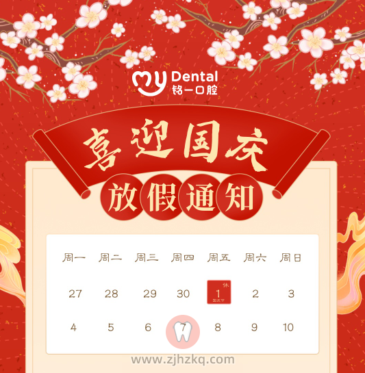 杭州铭一口腔国庆节假期上班放假安排 杭城看牙记 • 2021年9月30日 20:14 • 看牙问答 杭州铭一口腔10.1日店休一天大家不要跑空了哟小铭医生建议趁着假期空档来给牙齿做个秋季保养吧~ 铭一口腔于2021年10月1日国庆节休诊一天,10月2日恢复接诊,给您带来不便敬请谅解。如有口腔就诊需求,敬请提前咨询。恭祝您与家人节日快乐、阖家欢乐! 门诊地址:杭州市江干区城星路钱江国际时代广场二号楼2楼 本文内容源自网络仅供参考,不作为诊断医疗依据,更多查询请 → 在线咨询客服