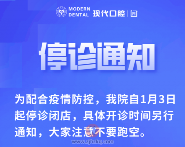 宁波北仑健安现代口腔停诊通知 杭城看牙记 • 2022年1月3日 11:44 • 杭州看牙动态 停诊通知! 为配合疫情防控,我院自1月3日起停诊闭店,具体开诊时间另行通知,大家注意不要跑空。 本文内容源自网络仅供参考,不作为诊断医疗依据,更多查询请 → 在线咨询客服