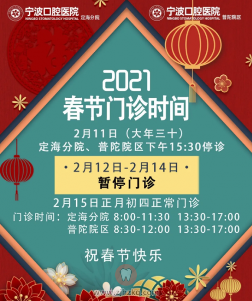 宁波口腔医院定海分院及普陀院区春节期间门诊时间官宣: