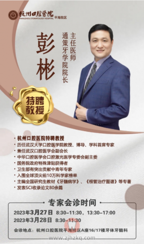 彭彬教授坐诊杭州口腔医院牙体牙髓科 杭城看牙记 • 2023年3月22日 08:22 • 杭州看牙动态 【专家会诊日】通策牙学院院长、杭州口腔医院特聘教授、全国知名牙体牙髓学科带头人彭彬教授 通策牙学院院长、杭州口腔医院特聘教授、全国知名牙体牙髓学科带头人彭彬教授将于3月27日全天、3月28日上午于杭州口腔医院平海院区牙体牙髓科坐诊,指导临床工作和学术交流。 来源:杭州口腔医院平海院区 本文内容源自网络仅供参考,不作为诊断医疗依据,更多查询请 → 在线咨询客服