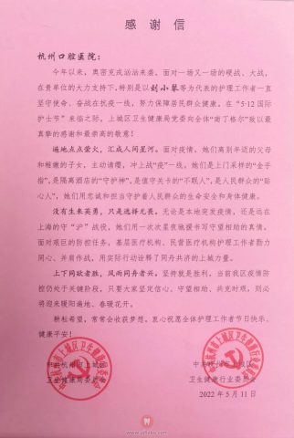 护士节前夕,杭州口腔医院收到了一封特殊的来信。