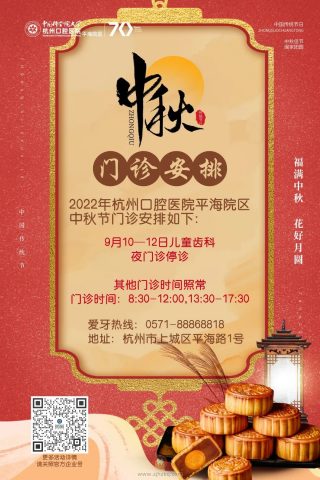 杭州口腔医院平海院区中秋节不放假门诊正常 杭城看牙记 • 2022年9月9日 00:13 • 杭州看牙动态 为方便大家就诊,杭州口腔医院平海院区2022年中秋期间(9月10—9月12日)门诊照常。 门诊时间8:30—12:0013:30—17:30 9月10—9月12日儿童齿科夜门诊停诊 温馨提示:疫情期间,请大家出门做好防疫工作。进入医院须提供72小时内核酸证明、健康码、行程码、场所码,配合体温检测和预检分诊。 来源:杭州口腔医院平海院区 本文内容源自网络仅供参考,不作为诊断医疗依据,更多查询请 → 在线咨询客服