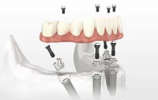 ALL-ON-4即刻种植牙是将两颗植体纯直植入、两颗植体倾斜植入(即使牙槽骨量不足也不用植骨粉);手术中会配合3D数字化导板,使植体植入更精准、快速、微创、手术时间更短;可以达到当天种、当天用。