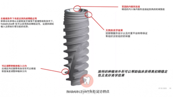 属于诺贝尔里特好的一款种植体,即使在复杂条件下也能获得高初期稳定性,即拔即种和即刻负重的效果都不错。