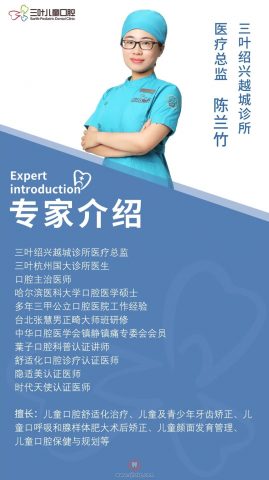 拥有多年公立医院儿牙经验的陈兰竹总监,有优秀的个人履历和精湛的医疗技术。