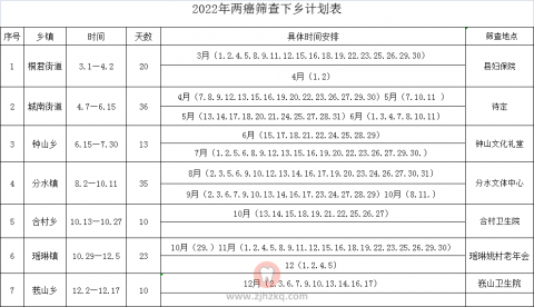 温馨提示:上图为计划表,筛查具体安排时间到时请关注辖区乡镇(街道)妇联通知,姐妹们积极参与哟!