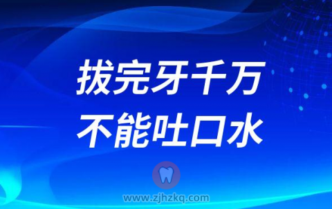 刚拔完牙后,拔牙创口处的血凝块还非常娇嫩,这个时候如果吐口水,会导致口腔内产生负压,使血凝块脱落,拔牙创口再次出血,极易造成创口感染,伤口愈合困难等,甚至引发干槽症。