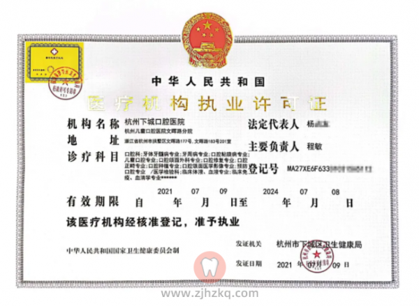 经过一年的筹建,杭州下城口腔医院(杭州儿童口腔医院文晖路分院)正式领取到《医疗机构执业许可证》,并即将迎来试开业!
