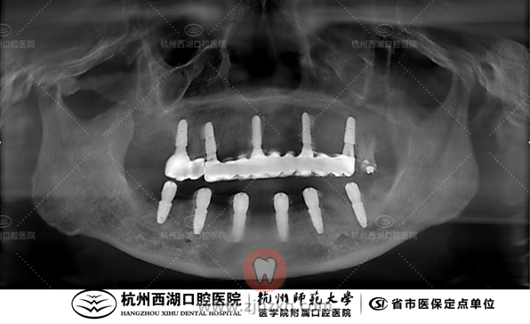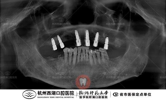 种植团队采用All-on-6即刻修复技术,为王阿姨植入6颗种植体,即日戴牙完成半口修复。