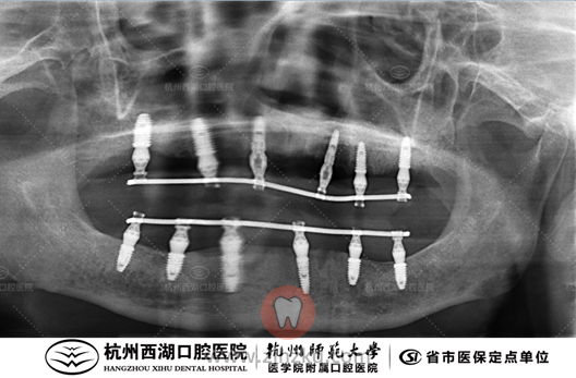 种植团队采用All-on-6即刻修复技术,即日戴牙完成半口修复。