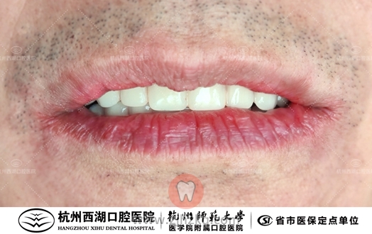 术后王叔叔的牙齿咬合关系恢复很棒,叔叔很开心,面部饱满更显年轻!