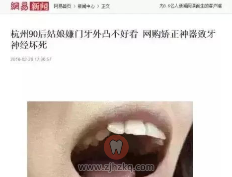 某医院接诊了一位23岁的姑娘,她在网上购买了隐形牙齿矫正器自己佩戴,想自行矫正因外凸而影响美观的门牙,结果导致一颗门牙牙神经坏死。