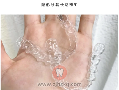 一般采用熟塑胶材料制成,没有异味。厚度在0.2-0.6mm之间,质地没有隐形牙套那么柔韧。