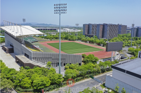 从空中俯瞰杭州师范大学的橄榄球场,占地近万平方米的场地绿草如茵,体育场西侧的观众席上,可容纳12000人观看比赛。未来,这里将举办杭州亚运会7人制橄榄球比赛决赛。作为橄榄球项目的核心,体育场改造提升“发力”最多的就是草坪改造,由透水层、基层和面层等共同组成的生态结构,保证了根系能长至20余厘米,确保整个草坪满足比赛要求。蓝天白云下,绿草长势蓬勃,正如激昂拼搏向上的体育精神。