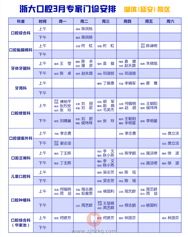 **口腔医院湖滨院区专家门诊安排 杭城看牙记 • 2021年3月2日 00:02 • 杭州看牙动态 **口腔3月专家专科门诊安排如下: 本文内容源自网络仅供参考,不作为诊断医疗依据,更多查询请 → 在线咨询客服