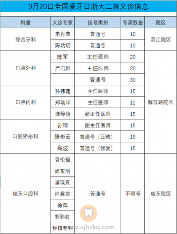 9月20日全天****口腔医学中心“**好医生”APP线上义诊活动。