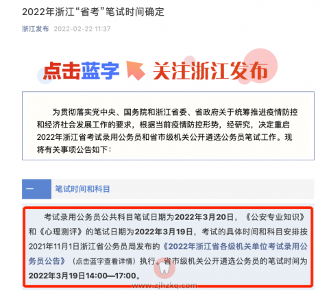 好消息!浙江2022公务员笔试最新时间已经定了!今天的“浙江发布”公布了《2022年浙江省考试录用公务员笔试时间》,小编整理如下。