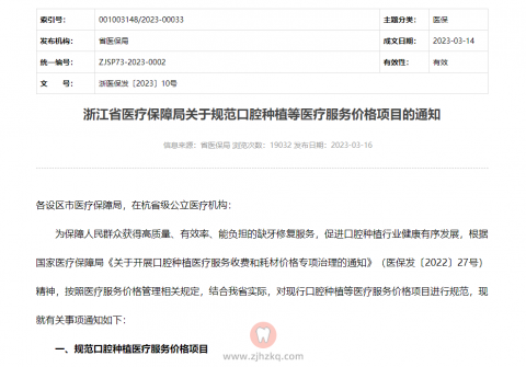 根据浙江**疗保障局发布的《关于规范口腔种植等医疗服务价格项目的通知》浙医保发[2023]10号,自4月1日起正式落实,采取“服务项目+专用耗材”分开计价的收费方式,实现技耗分离,耗材集中采购,规范医疗服务费。专用耗材按实际采购价零差率销售,单颗常规种植牙全流程医疗服务技术收费(不含材料费)合计最高不超过4320元。
