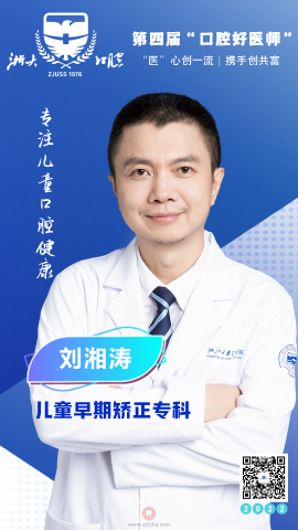 刘湘涛:主治医师,从事口腔正畸临床及科研教学工作近20年,专注于儿童与青少年错合畸形的早期矫治,包括乳牙期替牙期的局部障碍、功能因素、各种不良习惯等引起的儿童错合畸形的预防及阻断矫治。