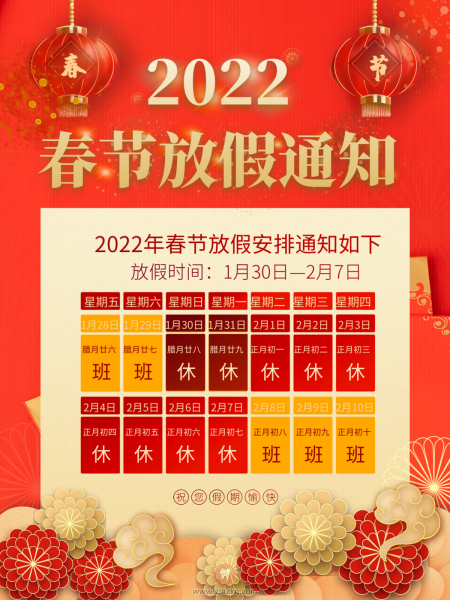 杭州正道口腔2022年春节放假安排 杭城看牙记 • 2022年1月20日 21:08 • 杭州看牙动态 再见20212022,给生活多些微笑明天一定会更好!祝福每位支持和信任正道的客户! 本文内容源自网络仅供参考,不作为诊断医疗依据,更多查询请 → 在线咨询客服
