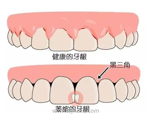 其实“黑三角”一般都是发生在牙齿拥挤不整齐的正畸者中,造成“黑三角”的一般有这两个原因: