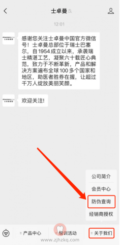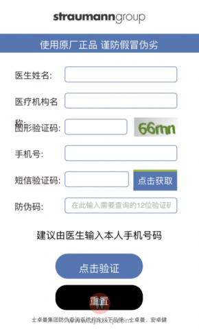 1、进入ITI瑞士士卓曼种植体品牌的官方网站、公众号或小程序进入,选择防伪查询(防伪码一般都在植体外包装上)。